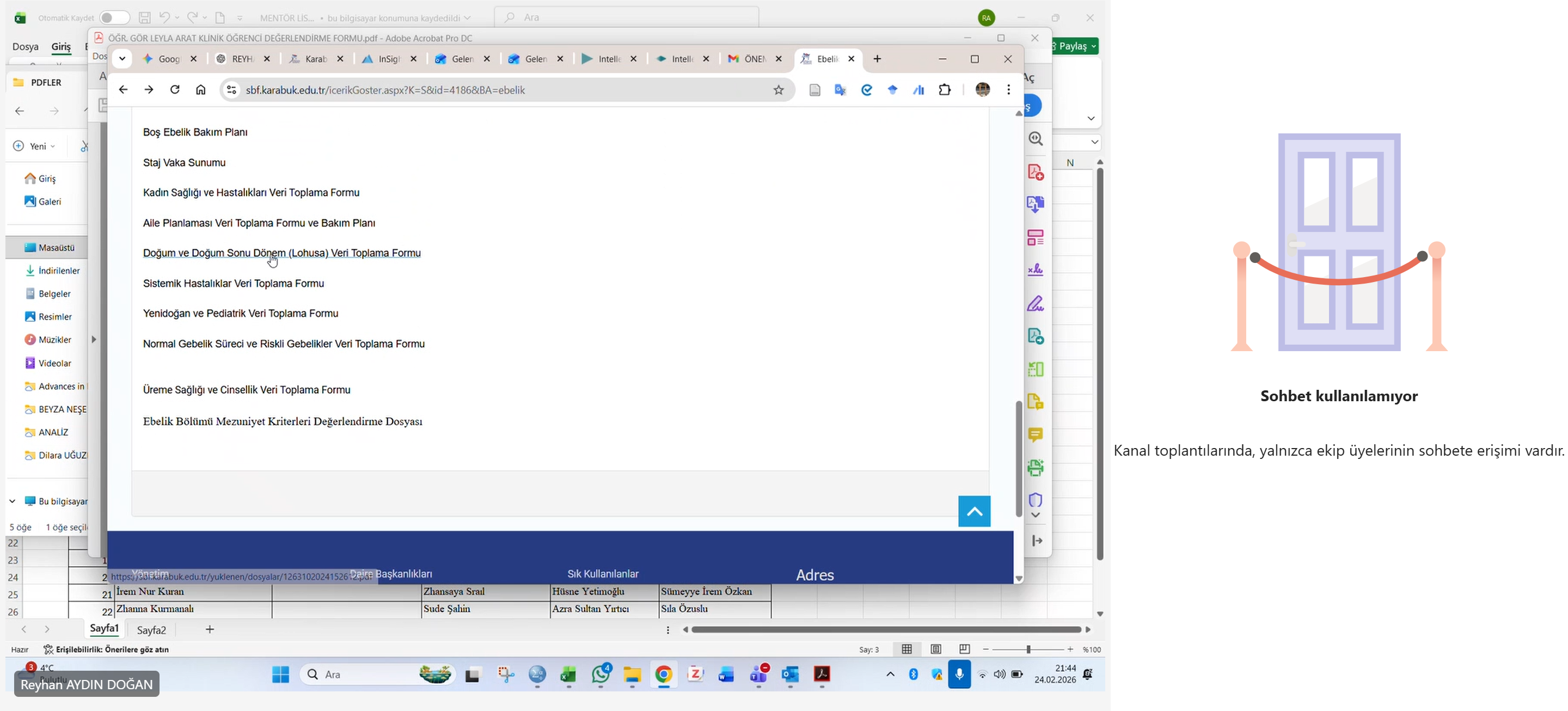 24 Şubat 2026 tarihinde EBE306 Riskli Doğum ve Doğum Sonu Dönem dersi kapsamında mentörlere yönelik çevrim içi bilgilendirme toplantısı gerçekleştirildi. Eğitim, Doç. Dr. Reyhan Aydın Doğan tarafından verildi.