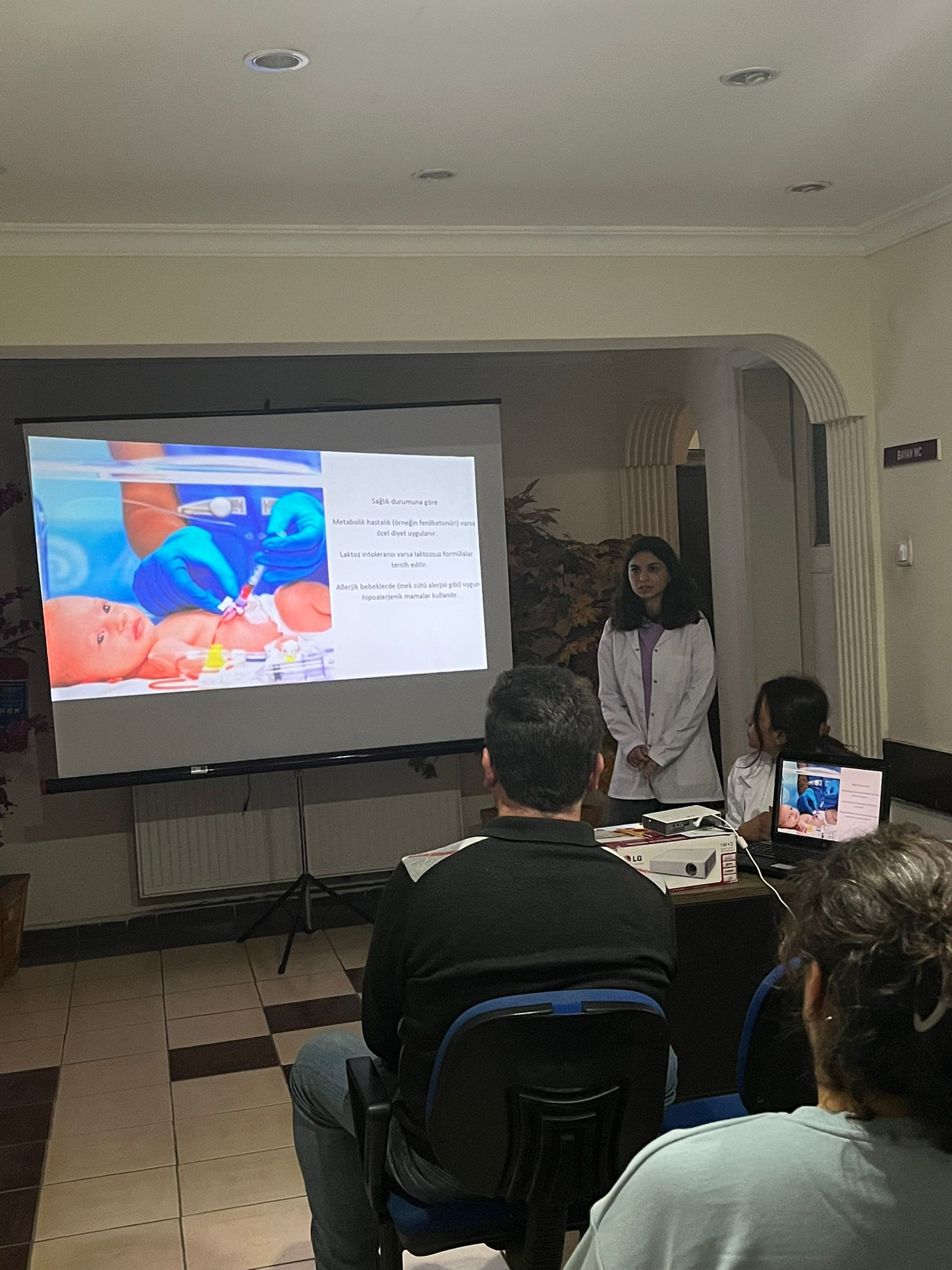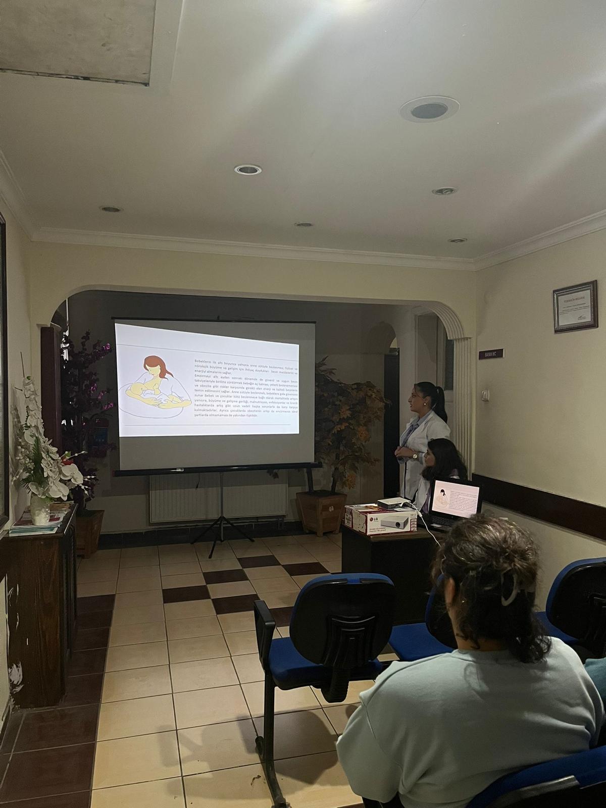 As part of the EBE403 - Midwifery Management course, conducted by Prof. Dr. Raziye Özdemir, a social contribution training session titled "The Importance of Breast Milk and Breastfeeding" was held at the Safranbolu District Health Directorate on Wednesday, November 12th. The event was attended by health directorate staff and practicing students. Presentations by Büşra Bektaş, Nurcan Cura, and Aygül Çelik addressed the benefits of breast milk, proper breastfeeding techniques, common breastfeeding problems, and suggested solutions. The training aimed to develop breastfeeding counseling skills, raise awareness, and strengthen community-based breastfeeding support, drawing on current evidence-based information.