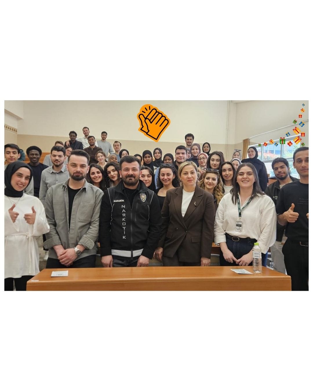 Doç. Dr. Özlem ÖZTÜRK tarafından yürütülen HEM546 "Adölesan Sağlığı Dersi" kapsamında Aziz BASLAN, Barış ÖZ ve Zeynep ÇETİNEL isimli öğrenciler “Adölesan Dönemde Bağımlılıklar ve Hemşirelik Yaklaşımı” konulu sunumlarını daha etkili bir şekilde gerçekleştirmek amacıyla değerli konukları derse davet etmişlerdir. Bu kapsamda, Narkotik Suçlarla Mücadele Şube Müdürlüğü’nde görev yapan Polis Memurları Tolunay KAYHAN ve Ender YILDIRIM ile Yeşilay Danışman Merkezi Sosyal Hizmet Uzmanı Handenur KOCA etkinliğe katkı sağlamışlardır. Kıymetli katılımcıların önemli paylaşımları sayesinde etkinlik oldukça verimli bir şekilde gerçekleştirilmiştir.