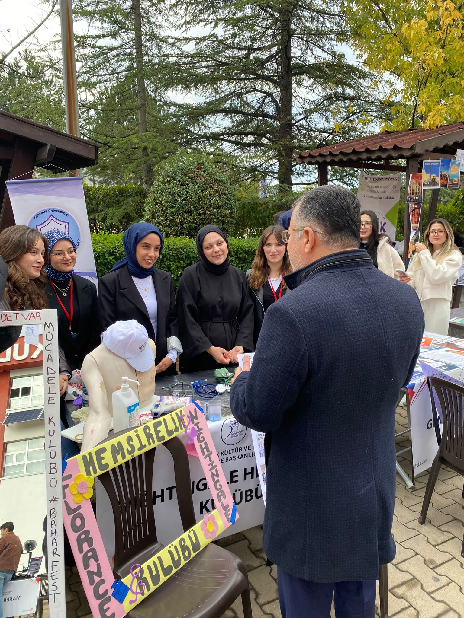 The stand was honored by the visits of Rector Prof. Dr. Fatih Kırışık, Dean Prof. Dr. Müslüm Kuzu, Vice Dean Dr. Tuğba Güngör, and Head of the Nursing Department Assoc. Prof. Dr. Tuğba Aydın Yıldırım, as well as many other faculty members from our department and the university.