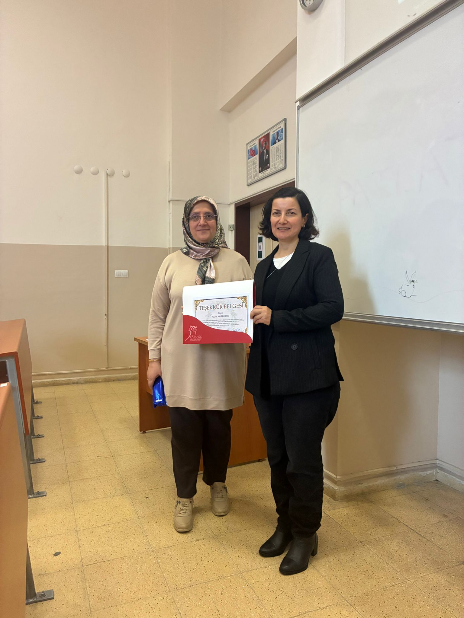 The event was attended by Ms. Güler Karakırık, Director of the Yazıköy Barrier-Free Life Center, affiliated with the Karabük Provincial Directorate of Family and Social Services. During the session, she shared her professional knowledge and experience related to health and nursing care for older adults and individuals with disabilities, and responded to questions from the students.